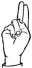 На ћирилици написано МИЉАН АРКУЛА састоји се из 11 слова [?]. Исписано ћириличном једноручном азбуком за глувонеме: